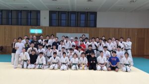 少し遅れて到着しましたが、すでにたくさんの空手家の方々で道場が満杯でした。