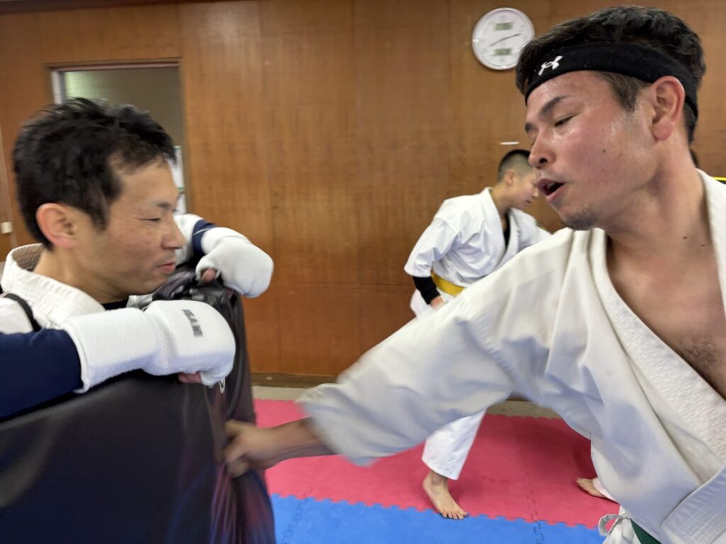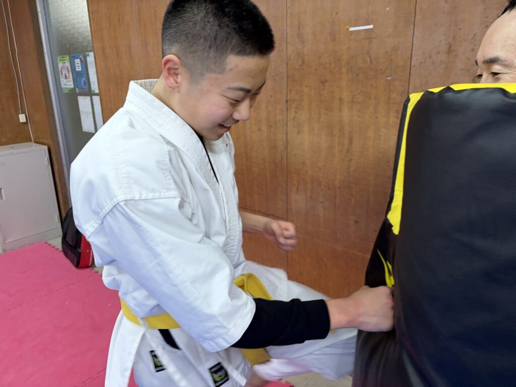 今週末の試合のショウタは恒例の追い込みミットを行い皆さんから気合を注入してもらいました。