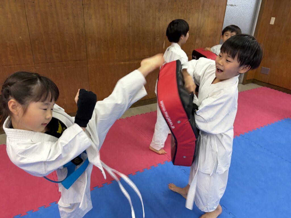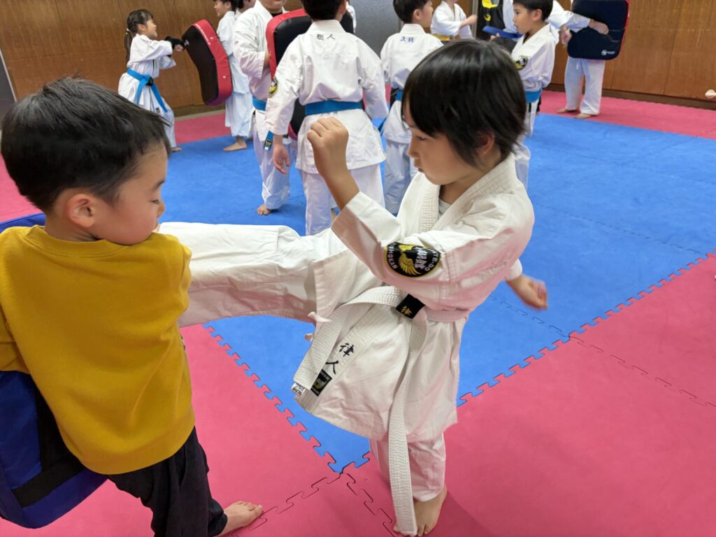 2部クラスは上段蹴りの練習の成果が出てきました。みんな上手に蹴れるようになってきています。