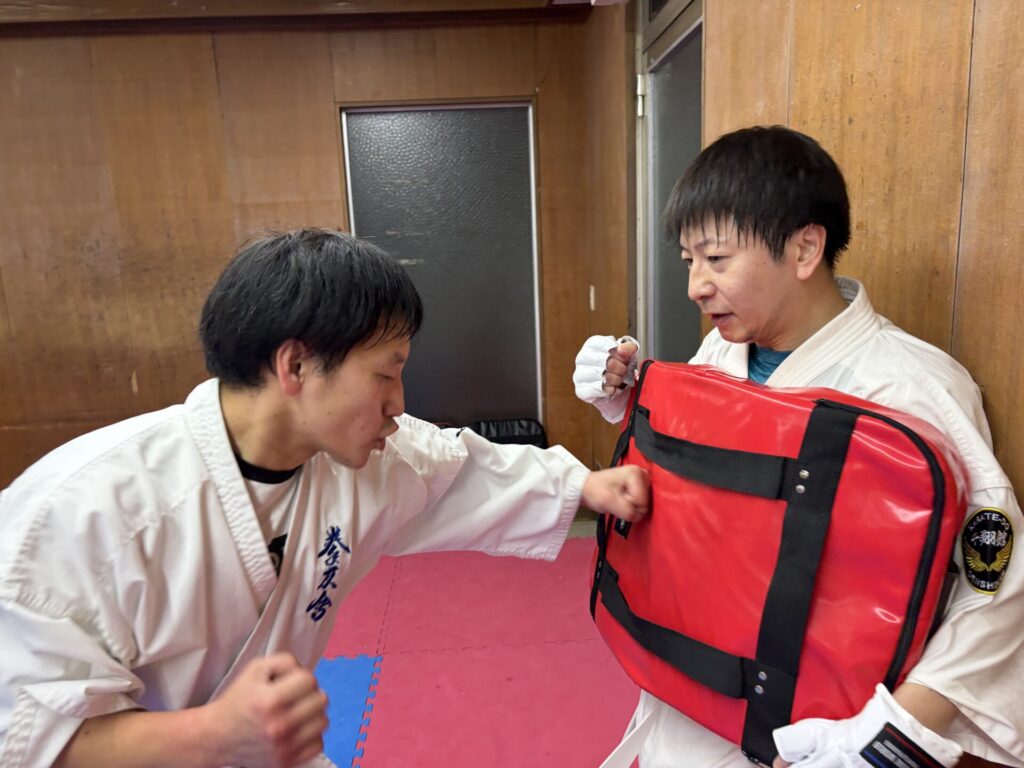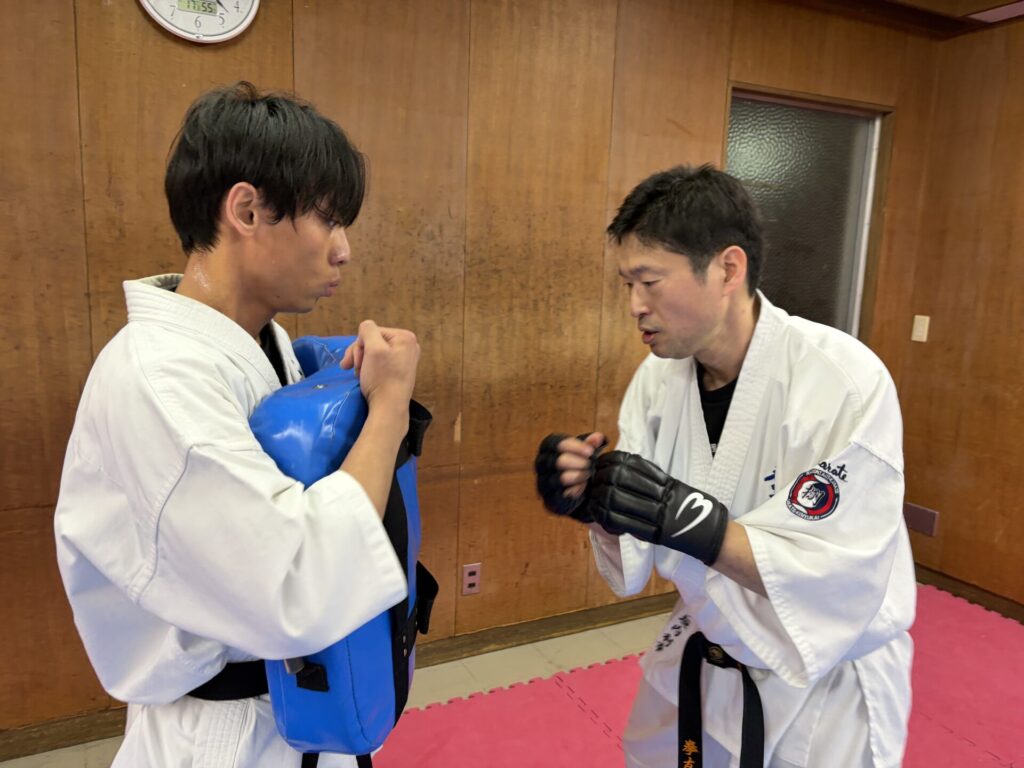 学生はテスト期間中の為ほとんどお休みです。豊中拳友会から下垣内代表と涌井先生が来てくださいました。