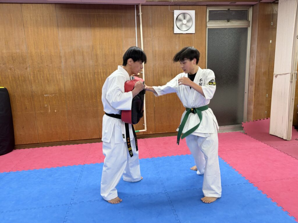 距離に応じた突きの打ち方も指導し繰り返し練習しました。