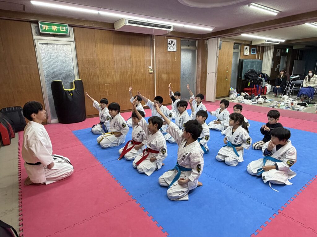 大樹初段が空手復帰となり少年部からお手伝いに来てくれました。色々とサポートしてくれて稽古がよりスムーズに進めることができました。