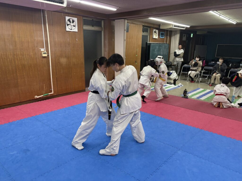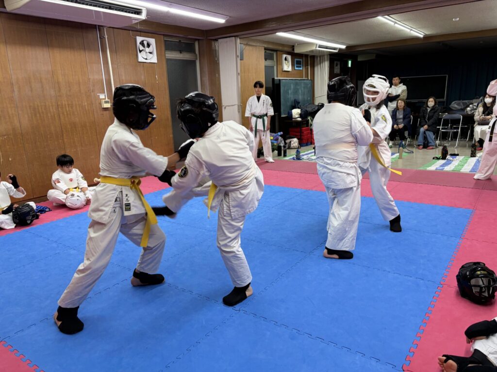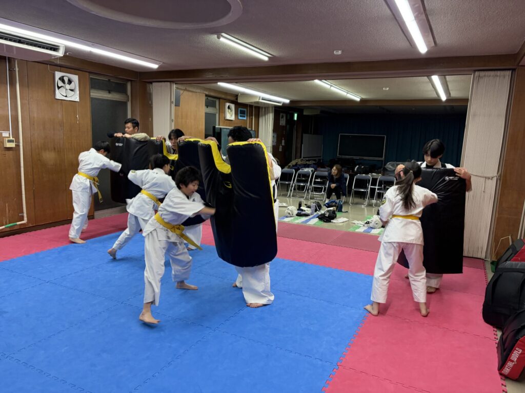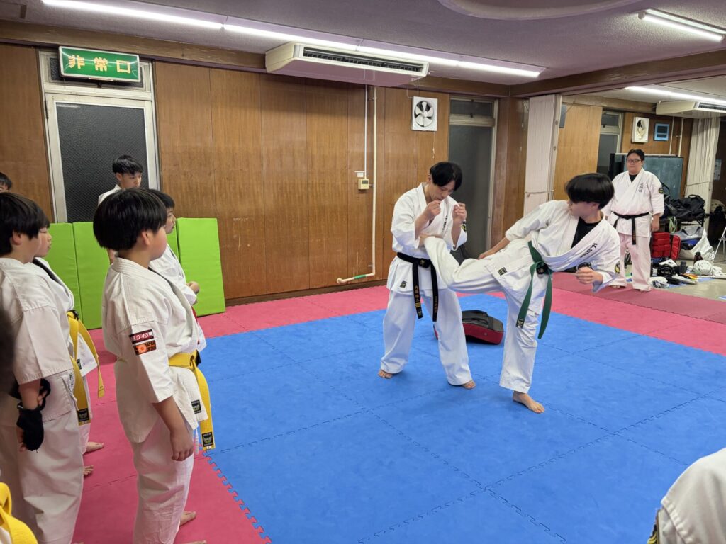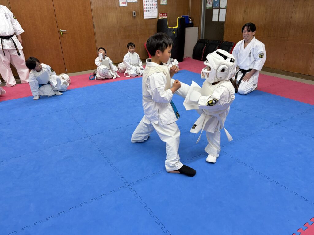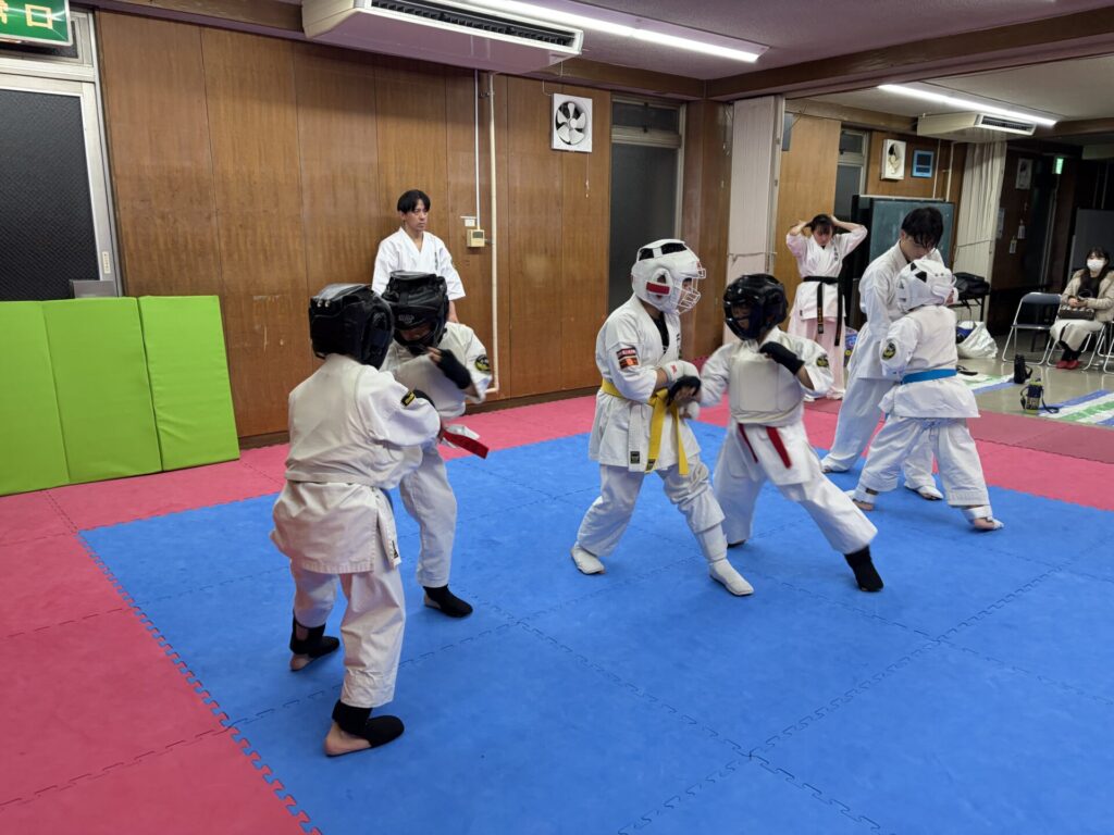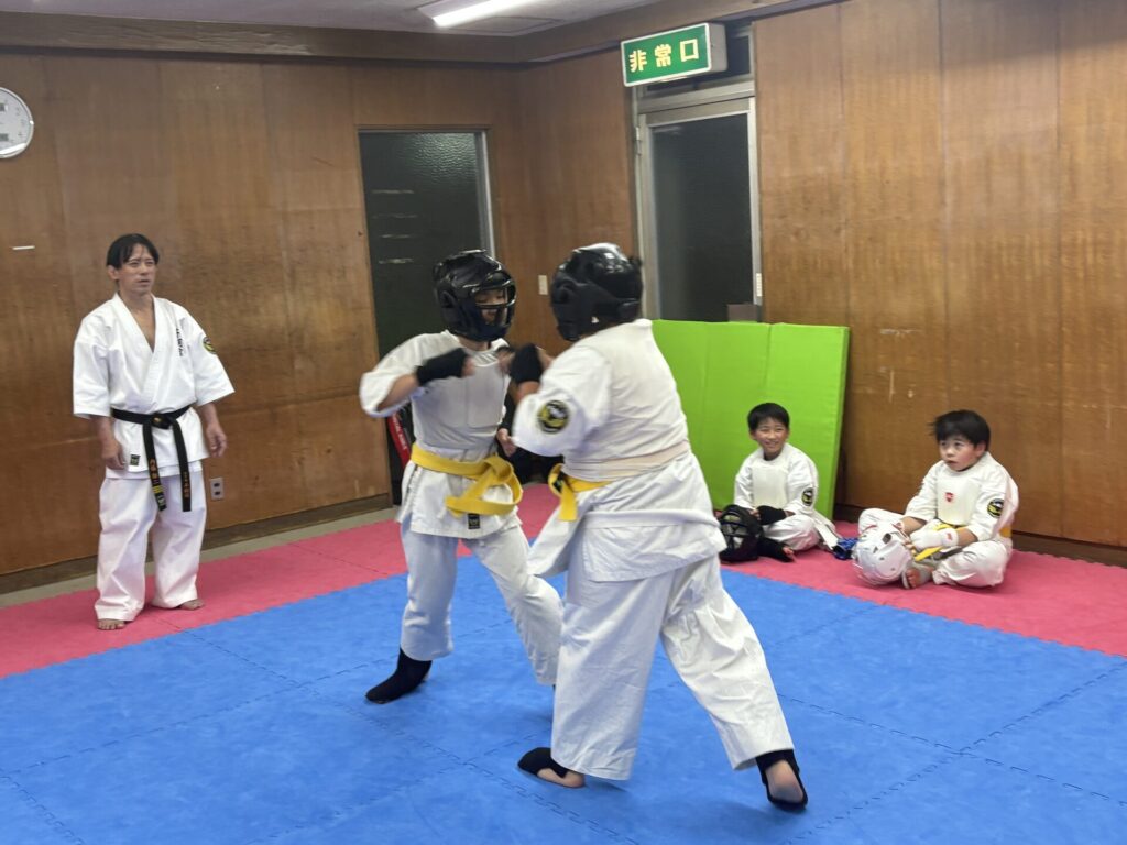 ミットと組手では気づいた時に個々にアドバイスや指導をしました。