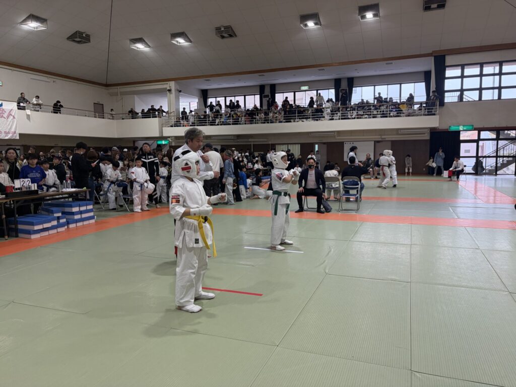 初戦と2回戦はフットワークが良くて上段蹴りで技ありをとる等積極的に攻めて勝ち上がります。準決勝も良い動きです。互角の展開でしたが最後に上段蹴りを取られて判定負け。今回はとても動きが良くなっていました。上段蹴りも蹴れるようにもなっていてレベルアップしています。また次のチャレンジも頑張っていきましょうね。初めての3位入賞おめでとうございます!