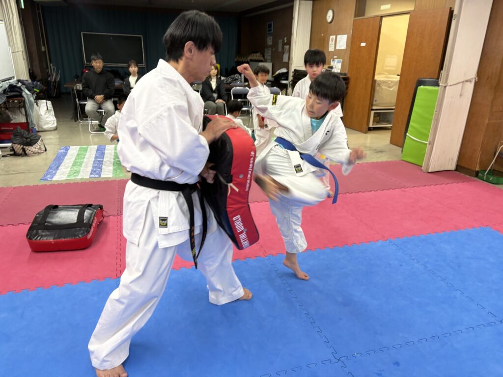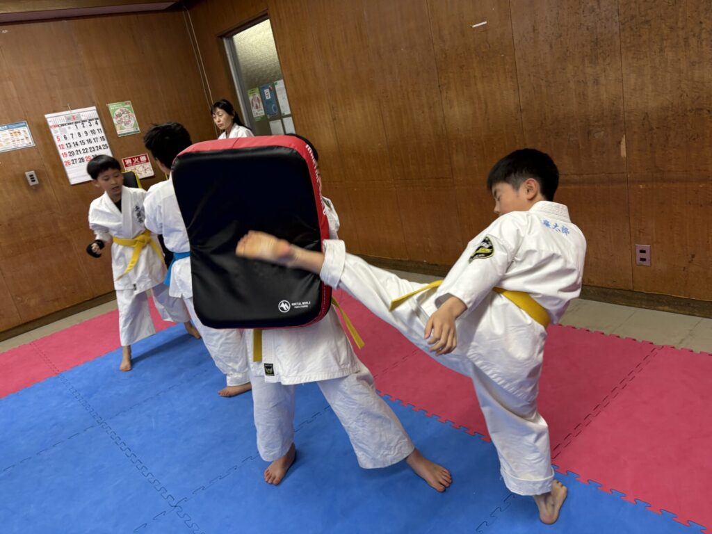打たせ稽古は下段蹴りを中心にしっかりと行いました。