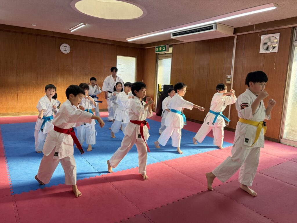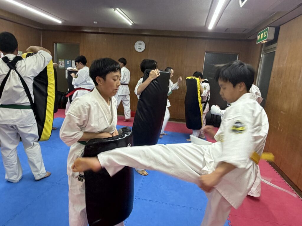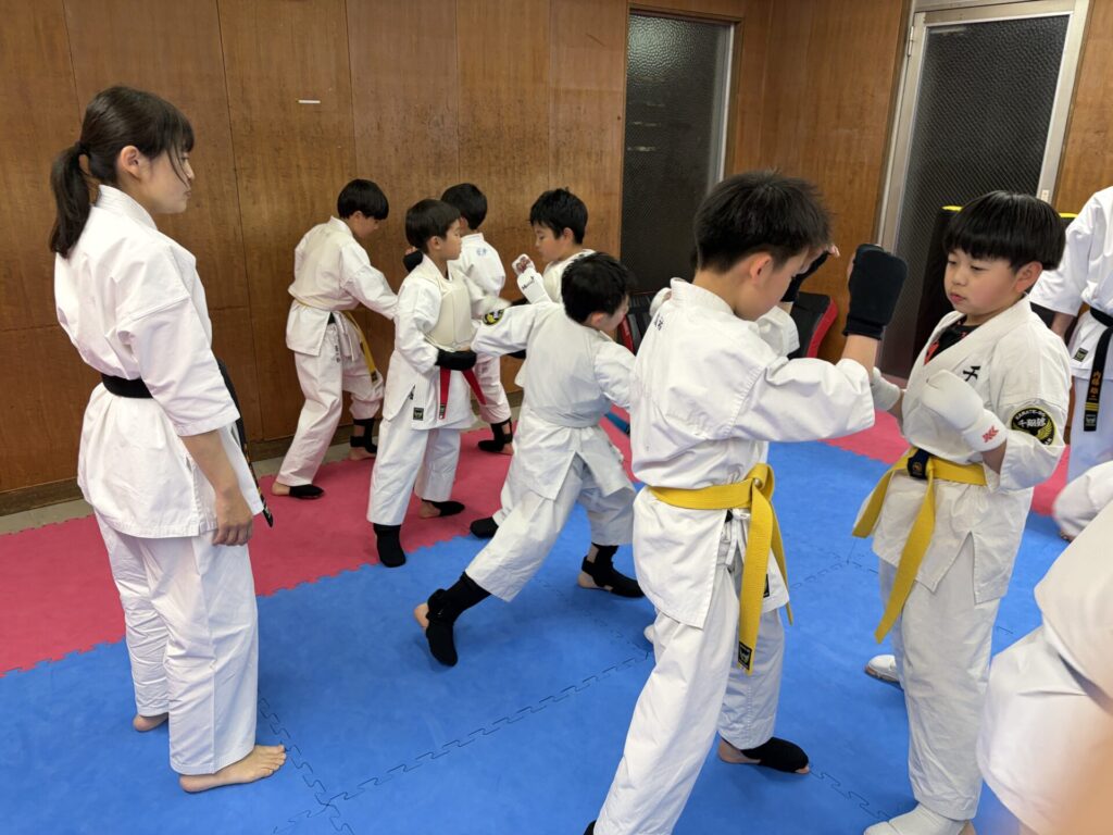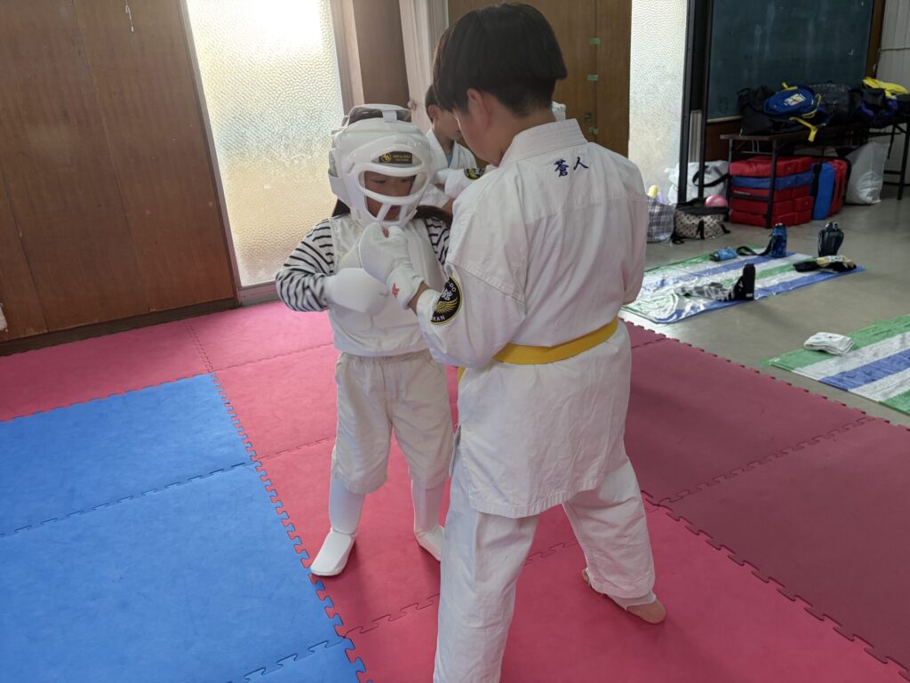 1部クラスの稽古に2部クラスのテッチャンとアオトが指導のお手伝いにきてくれています。